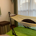 人生初、念願の一人暮らしが叶い、新宿近辺のロフト付ということで一目惚れ!物は極力少なくし、家具の配置と色合いは軽やかでさっぱりした感じを狙いました。まずハンモックは窓辺でまどろめる位置にし、スツールと机を置くことで、動かなくても必要な物が取れる設計に。部屋の左側の出窓にはプロジェクターを置き、梯子のある部屋の右側の広い白壁に投影できるホームシアター仕様にしました。ロフトは入口が少し狭目であるもののカーテンレールがもともとついていたりして、使い方によっては無限の可能性を秘めているなとワクワクが止まりません!写真では見づらいですが、小さなベランダもあり、趣味の自転車を置いてます。季節に応じて模様替えできる楽しさもたまりません!まだまだ、無限の可能性を秘めている部屋だと思うので、プラネタリウムやはがせるタイプの壁紙などを使ったプロジェクションマッピングなど、いろいろやってみようと思ってます!